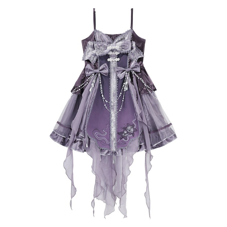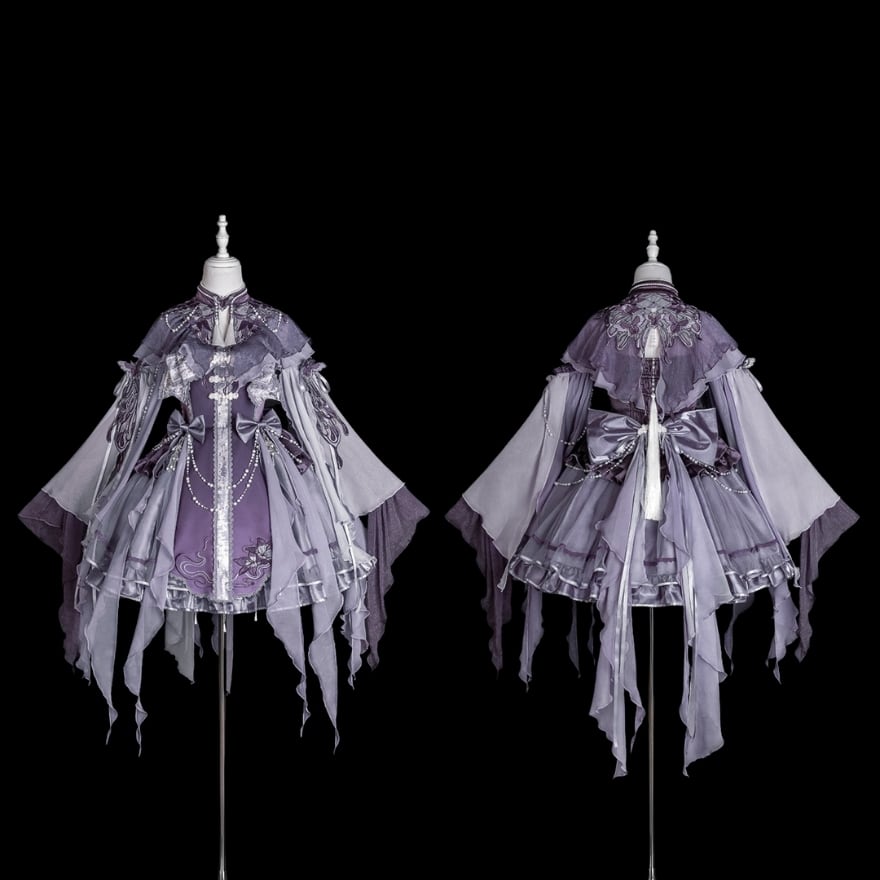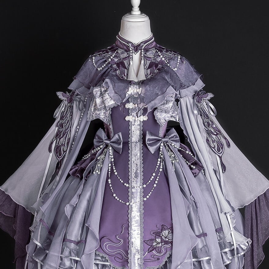 【正規品 予約品1月23日発送】ロリィタ 中華ゴシック 紫蝶モチーフ 吊りスカートセットアップ ケープ付き クラシカルロリィタ