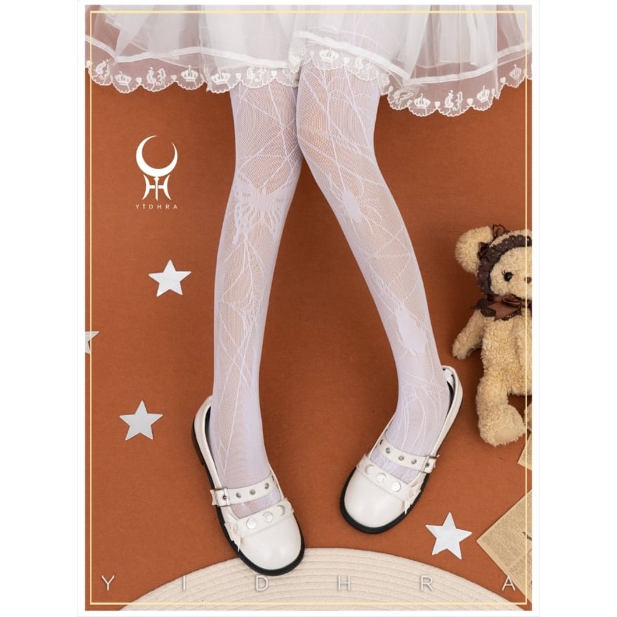 蜘蛛モチーフを繊細に描いたゴシックロリィタタイツ。