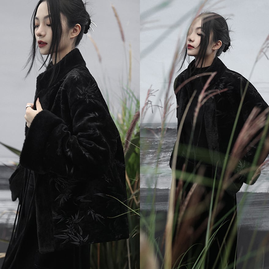関連キーワード: #中華風 #チャイナ #ジャケット #フェイクファー #竹柄 #レトロ #モード系 #黒コーデ #大青龍肆 #サブカル