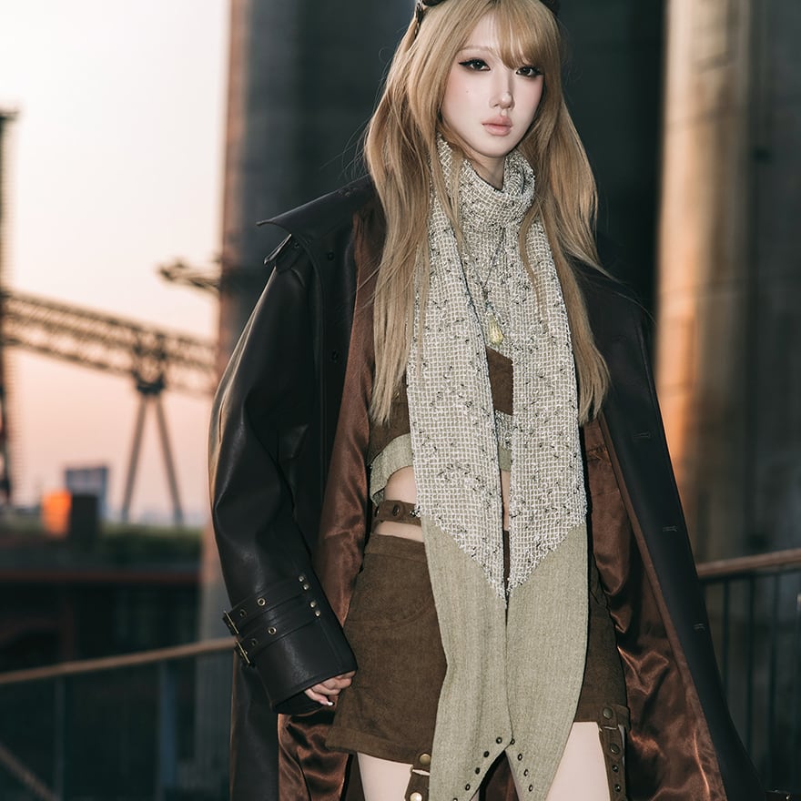 付属のスカーフにはハトメがあしらわれており、無骨なインダストリアル感を演出します。