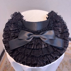 漆黒のレースとフリルを幾重にも重ねた、圧倒的なボリューム感を誇るゴシックボンネットです。