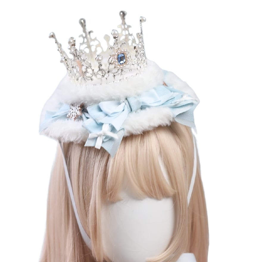 この商品は、繊細な透かし彫りと雪のようなファーが調和した、甘ロリやゆめかわいいスタイルを格上げする「氷の王女」をイメージした豪華なミニクラウンです。