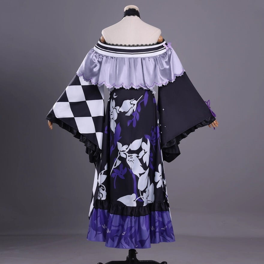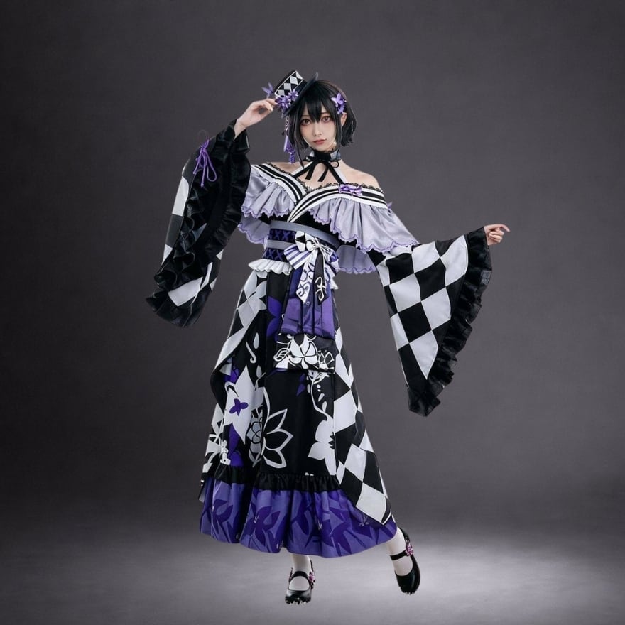 市松柄と紫の配色が印象的で、非日常感のある世界観を演出します。