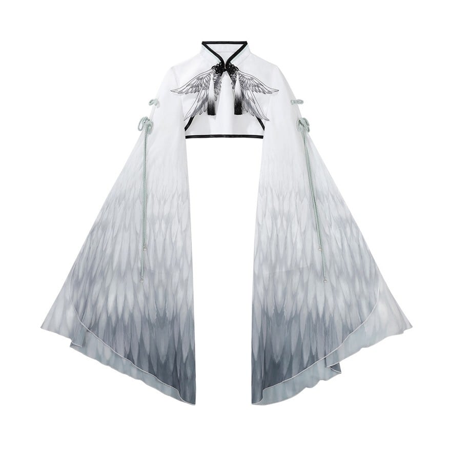 天使翼刺繍チャイナロリータケープ|透け感グラデーション|アイドル舞台衣装・コンカフェ対応|ドラマティック演出
