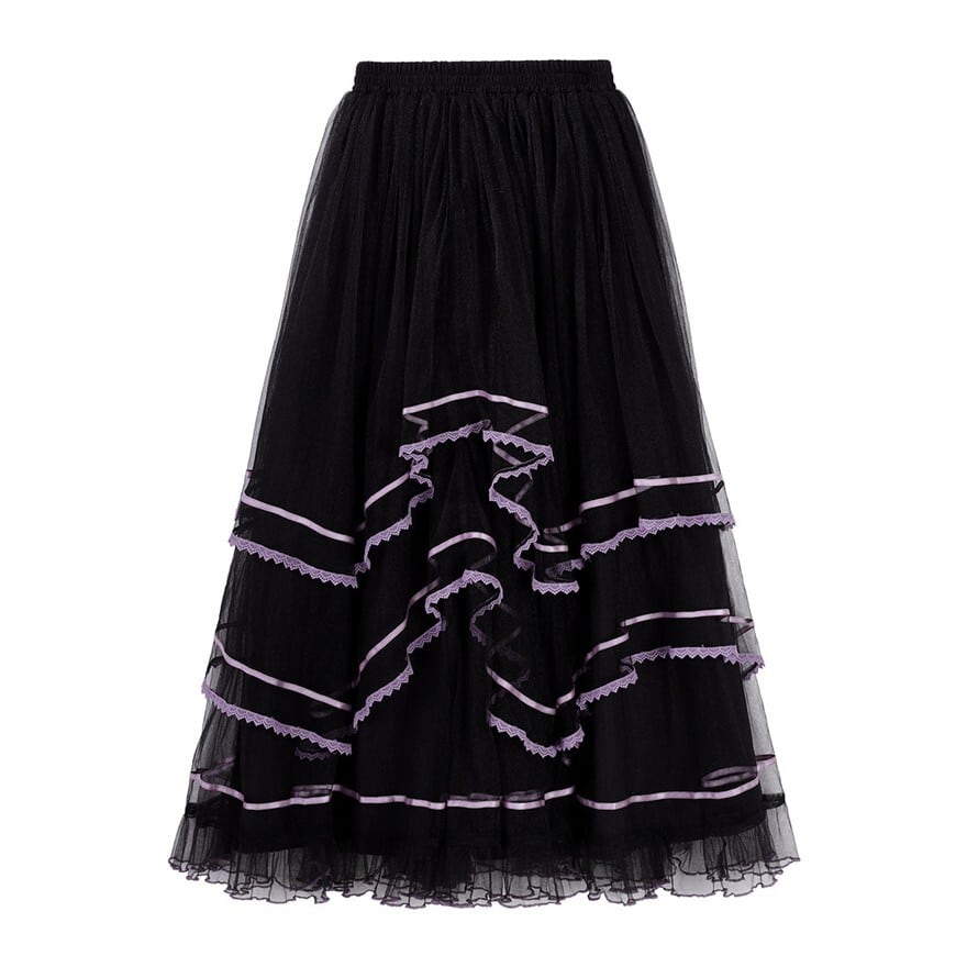 クラシカルロリータ 和ゴシック3点セット レース×チュールAライン|紫フリルが映える舞台・イベント衣装