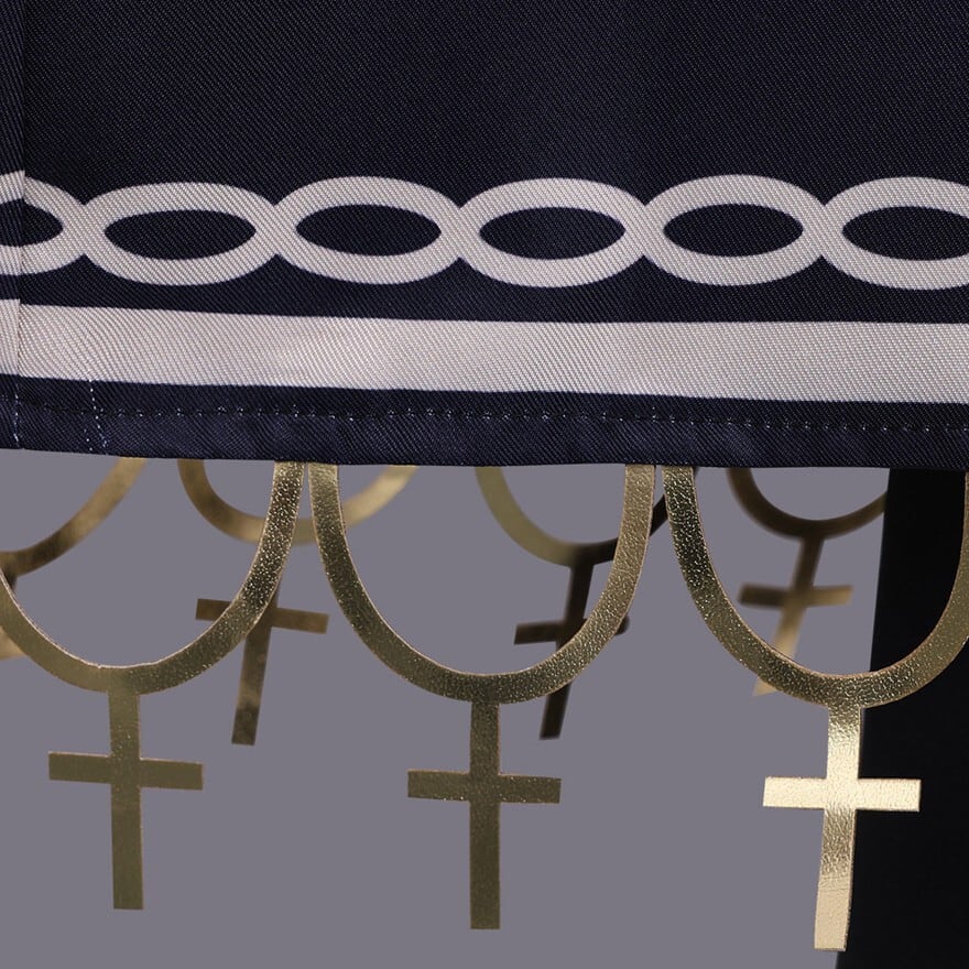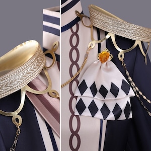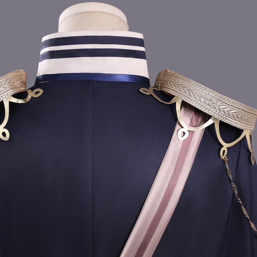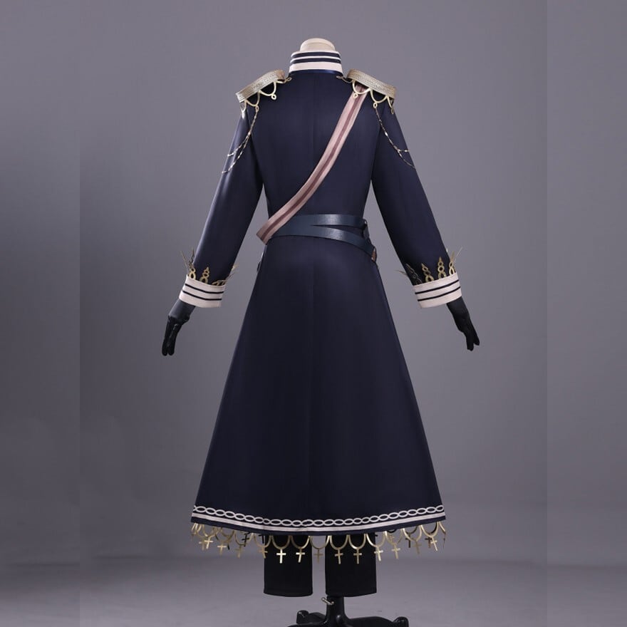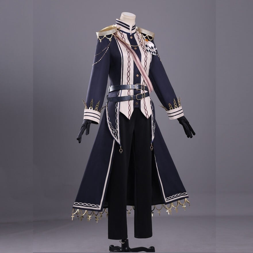 落ち着いたネイビーカラーを基調に、軍装モチーフを取り入れた「王子系ロリータ」のフルセット衣装です。ロングコートとパンツの構成に、エポレットやチェーンなどの装飾を加え、舞台や撮影、コンカフェ衣装としても世界観をしっかり表現できる一着。甘さを抑えたデザインで、初心者の方にも安心して取り入れていただけます。