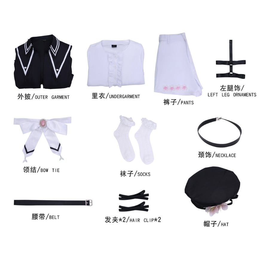 【豪華10点】魔法少女 完全コーデ|黒白モノトーン×花装飾|コンカフェ即戦力・撮影会・コスプレ対応