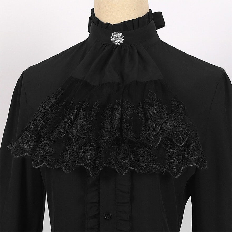 付け襟付き クラシカルゴシック ロリィタブラウス|背面編み上げ仕様・長袖フレアカフス(白/黒)