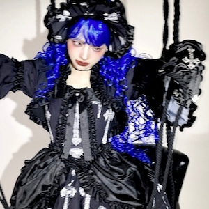 そんな声に応えるため、色味は落ち着いたトーンに統一し、甘さ控えめのクラシカルな構成に。バッスル風の立体シルエットが体型を自然にカバーし、無理なく“雰囲気のあるゴスロリ”を完成させます。