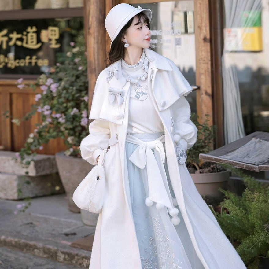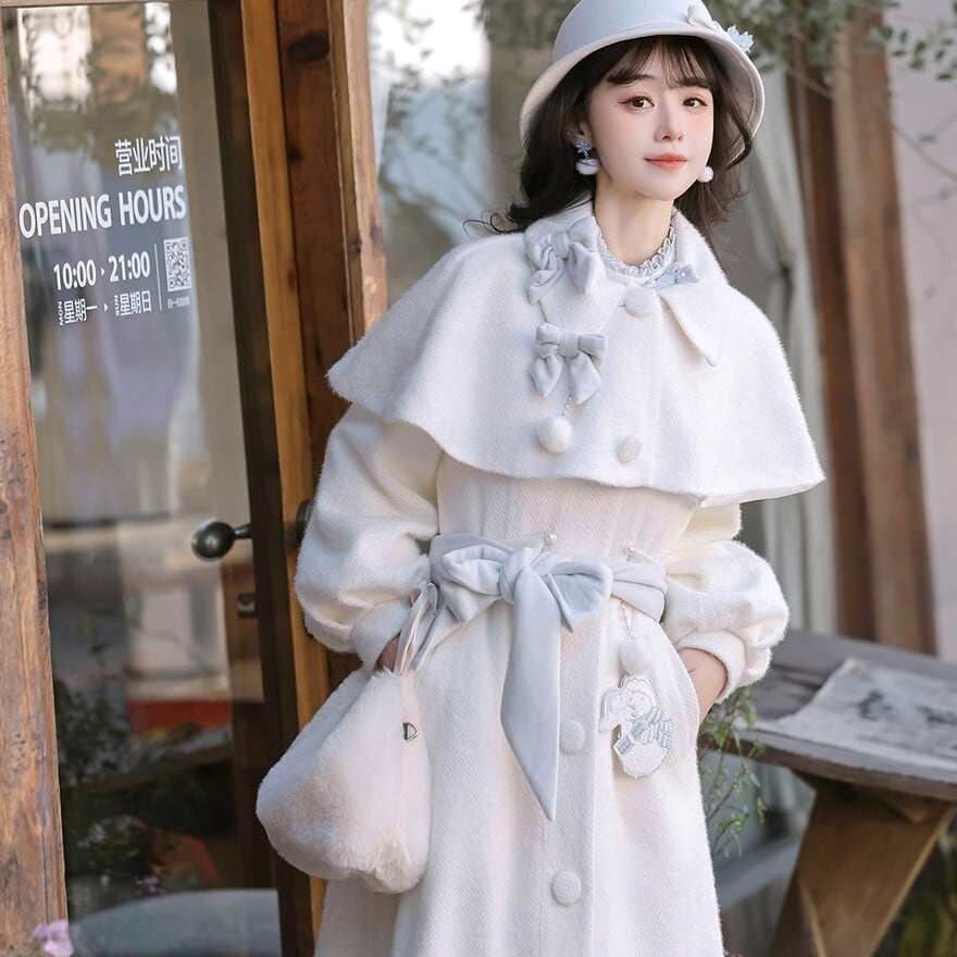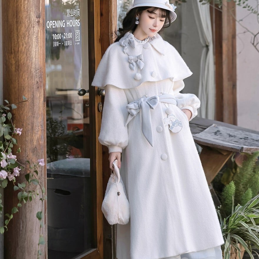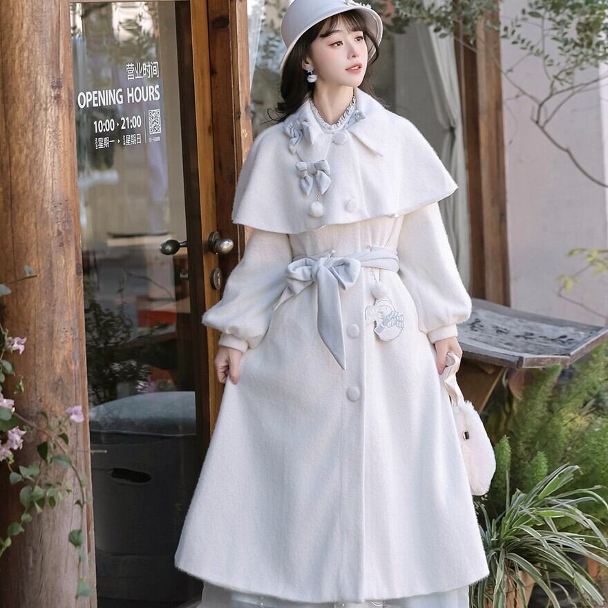 淡いアイボリーカラーとクラシカルなケープデザインを組み合わせた、ロリータ初心者や大人ロリータにも取り入れやすい「クラシカルロリィタ」ロングコートです。