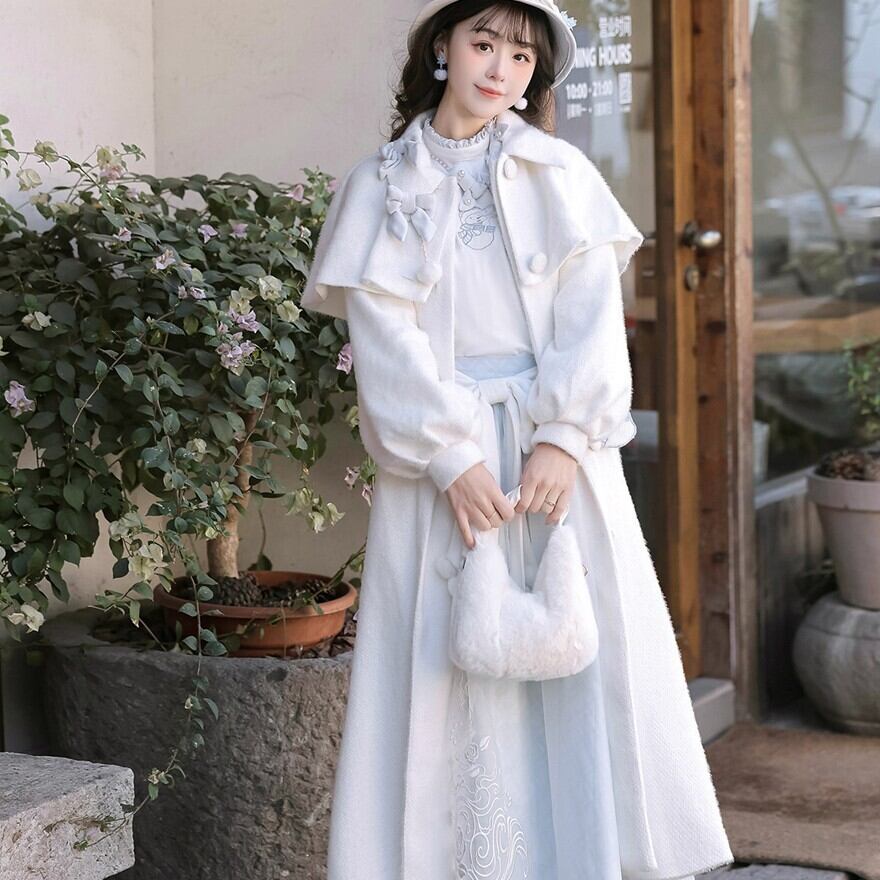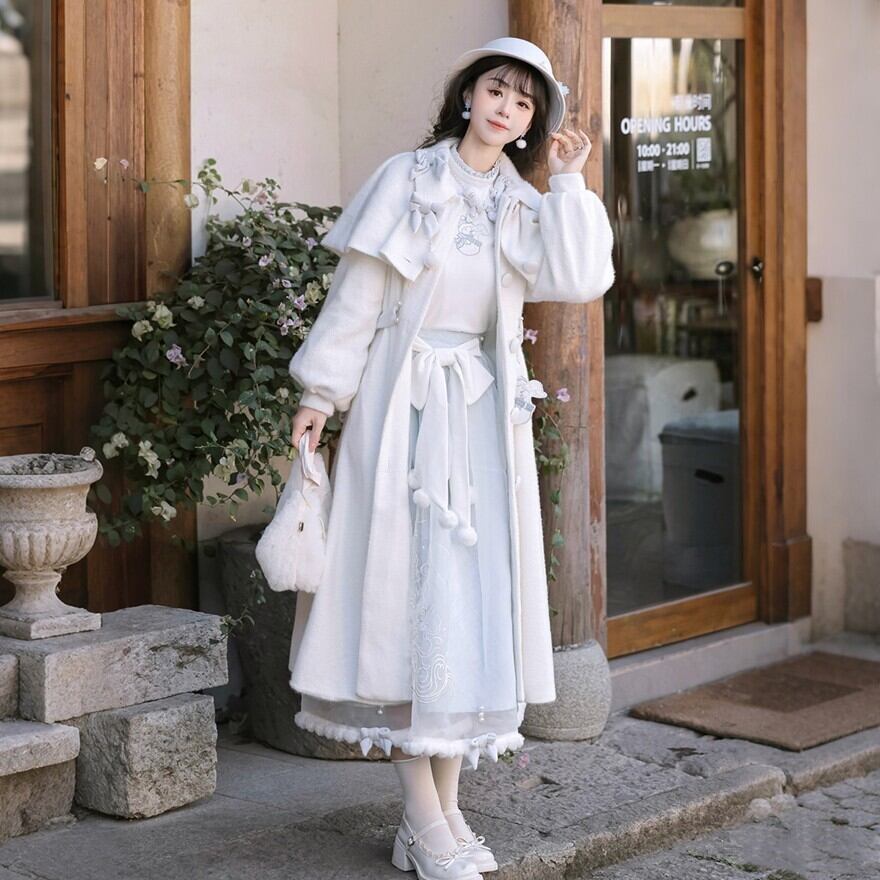 甘さを抑えた上品な装飾で、冬のお茶会や推し活など、落ち着いた場面にも自然に馴染む一着に仕上がっています。