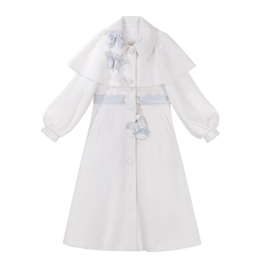 冬のお茶会 お出かけ 甘ロリ 雪だるま刺繍ケープコートとお城柄スカート 豪華3点セット