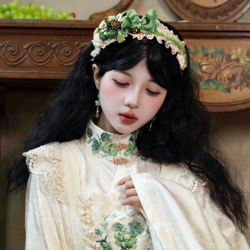 甘さを抑えた上品な印象で、ロリータ初心者の方でもコーディネートに取り入れやすく、舞台衣装や撮影など非日常シーンで映える一着です。