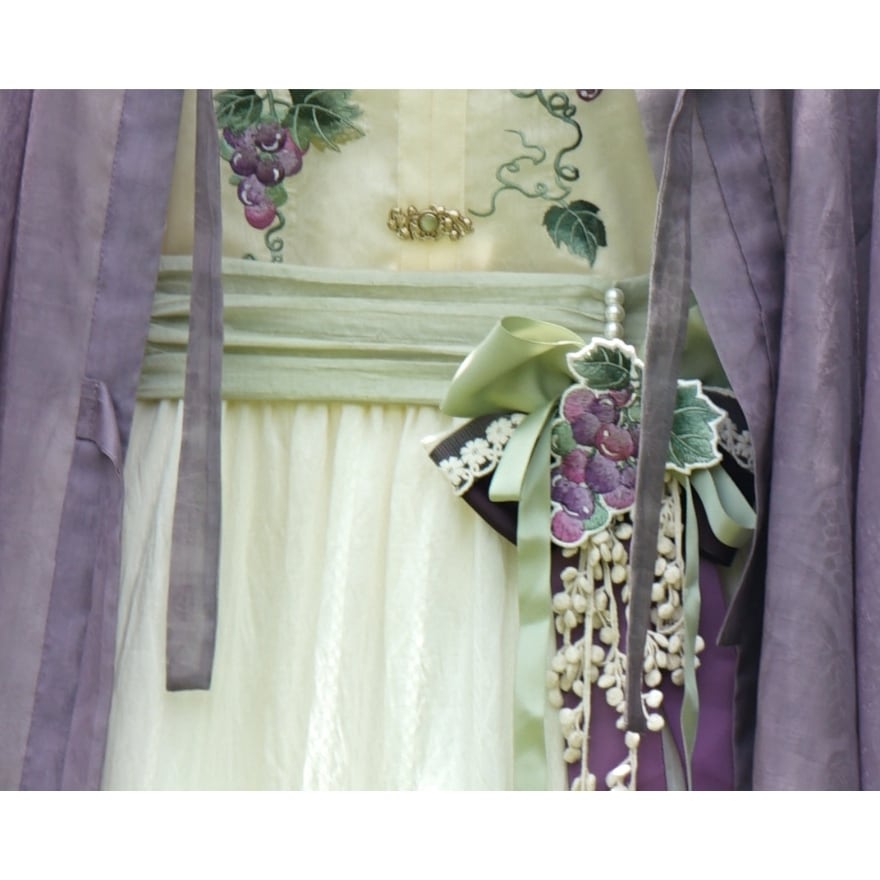 葡萄や草花モチーフの総柄デザインで和中華の幻想的な雰囲気