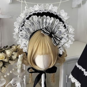 繊細なレースフリルを贅沢に重ねた、ロリータファッション向けヘッドドレスです。