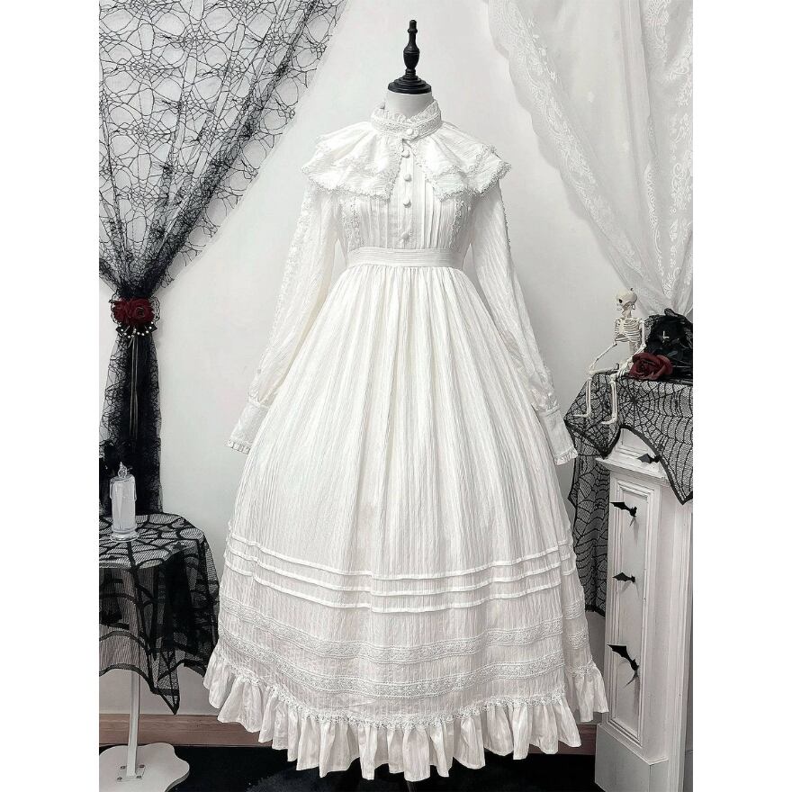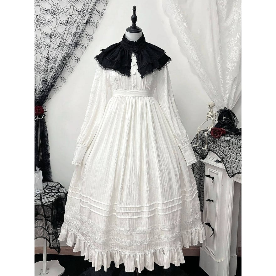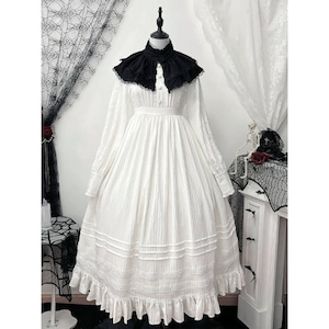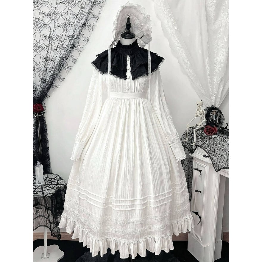 付け襟とボンネットがセットになったクラシカルロリータ向け長袖ロングワンピース3点セット