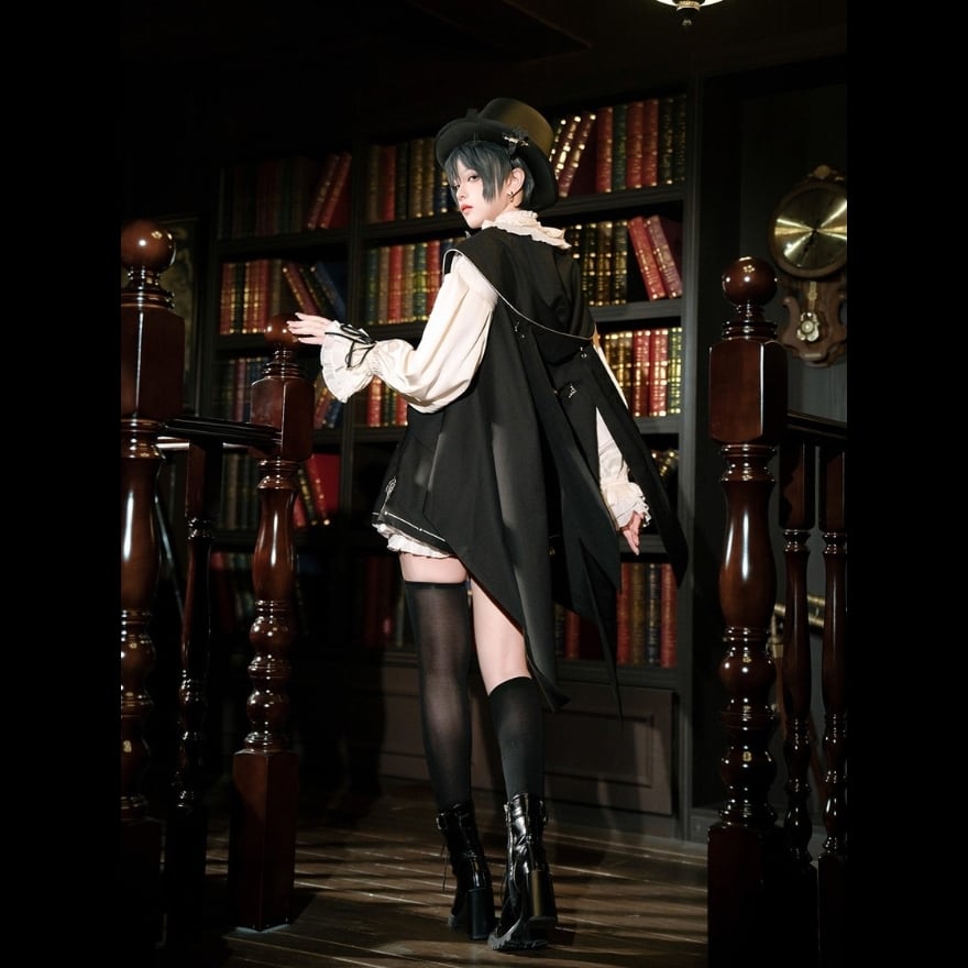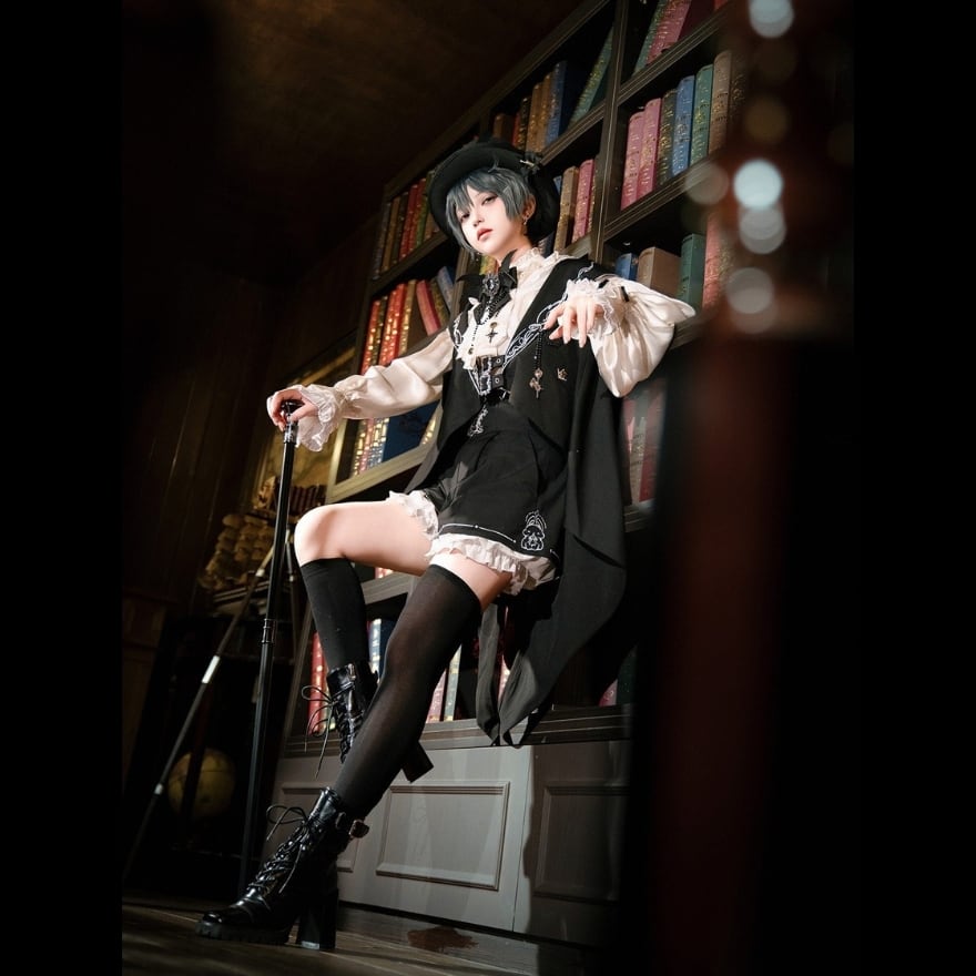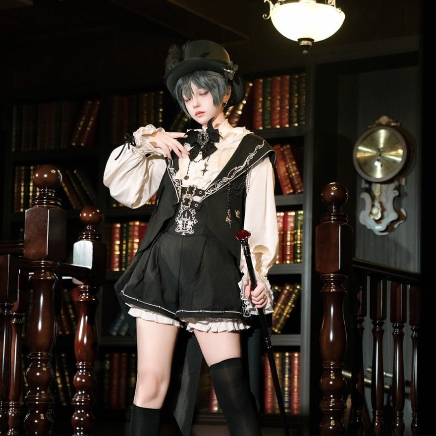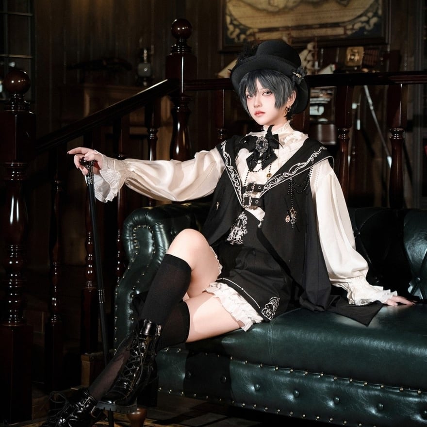 王子系・ゴシックロリータの世界観を基調とした、ベスト・ブラウス・ショートパンツの3点セット衣装です。