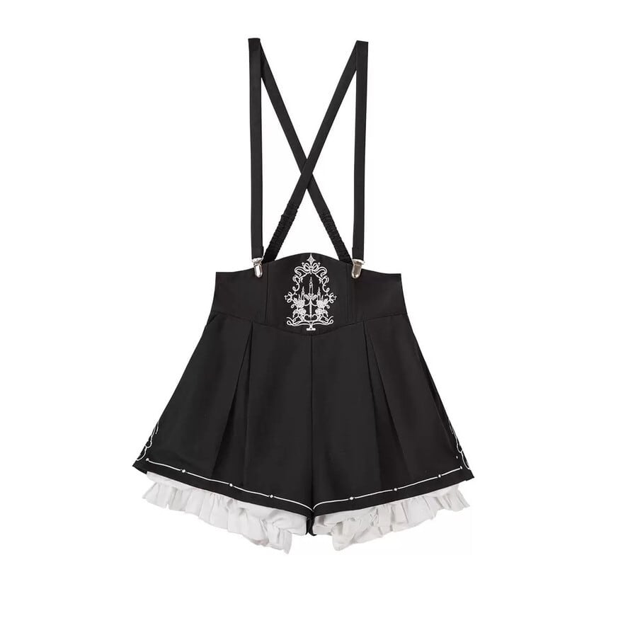 ・ショートパンツ:サスペンダー付き、裾フリルレイヤードデザイン