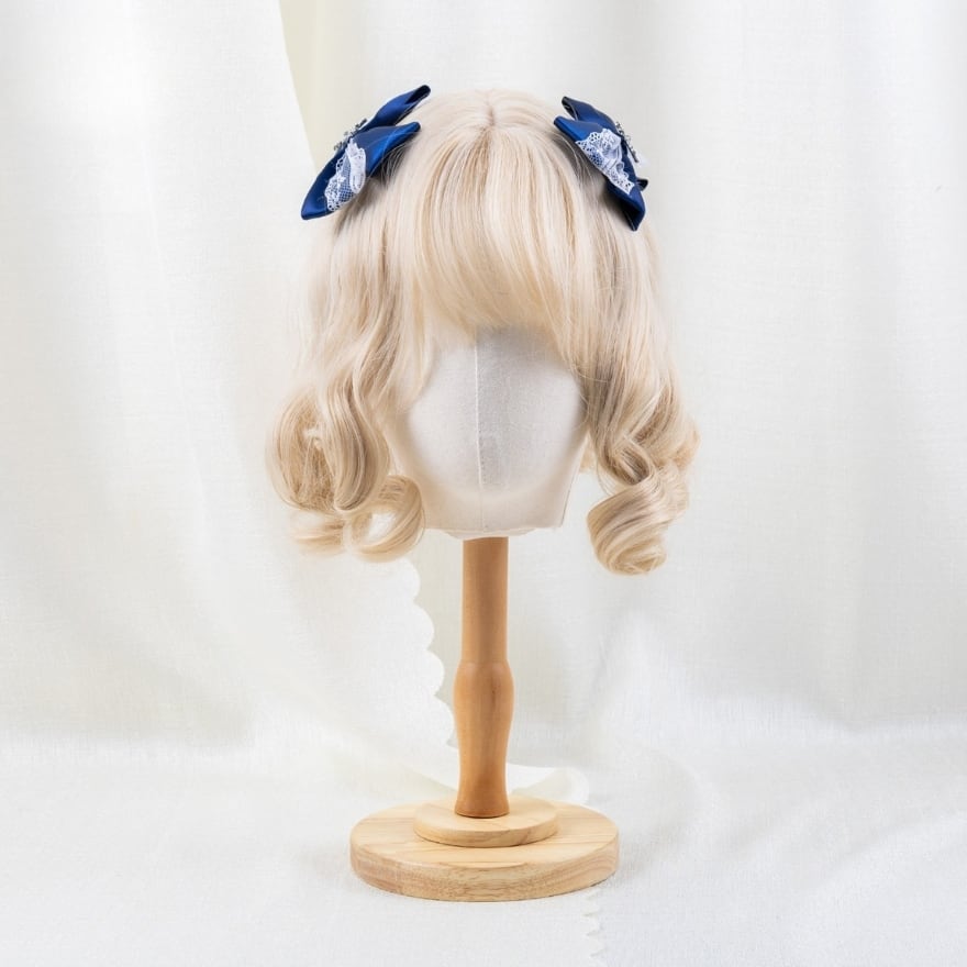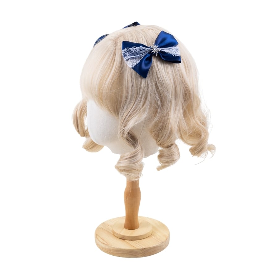 ロリィタファッションが初めての方にも取り入れやすい、ネイビーカラーを基調としたクラシカルなヘッドドレスです。繊細なレースと落ち着いたサテンリボンを組み合わせ、甘くなりすぎず上品な印象に仕上げました。ワンピースに合わせるだけでロリィタらしい雰囲気が完成し、アクセサリー選びに不安のある初心者の方にも安心しておすすめできる一点です。