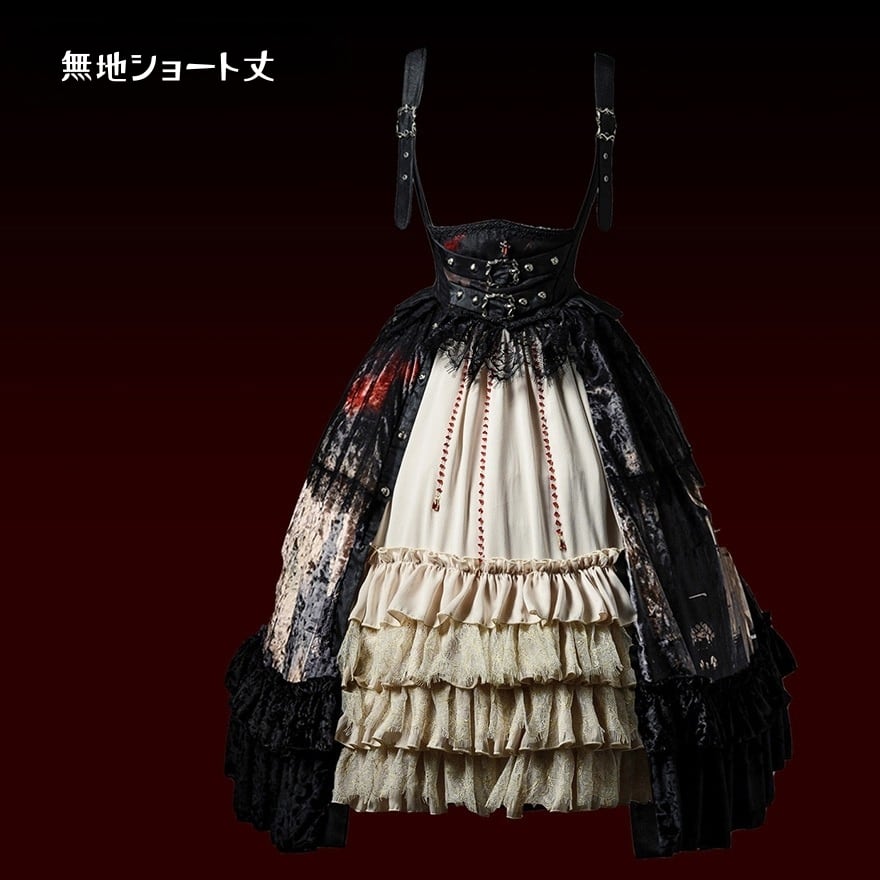 ダークで退廃的な世界観を放つゴシックロリータのジャンパースカートです。