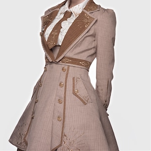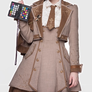 軍装風は硬く見えないか不安 → ウエスト切替とフレアシルエットにより、ロリィタらしい柔らかな輪郭を保っています。
