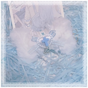中央にはきらめくハート型ビジューをあしらい、ゆめかわ・サブカル・天使界隈の世界観をやさしく完成させます。