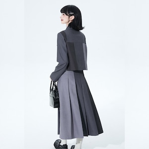 クラシカルセレモニー対応|配色ジャケット×プリーツロングスカートセットアップ(卒業・入学式にも)