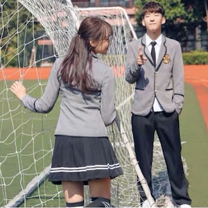 ブラックまたはグレーのクラシカルな制服風ブレザーです。直線的で端正なシルエットと控えめな装飾により、甘さを抑えた上品な印象を演出。卒業式や入学式などの式典にも対応しやすい、落ち着いた佇まいが特徴です。