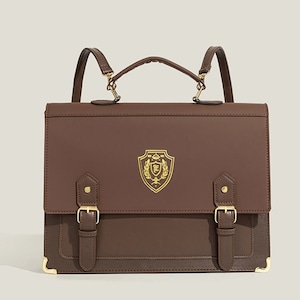 早割|新入学に|クラシカル学院風ロリィタに合うエンブレム付き2WAYスクールバッグ(ブラック/ブラウン)