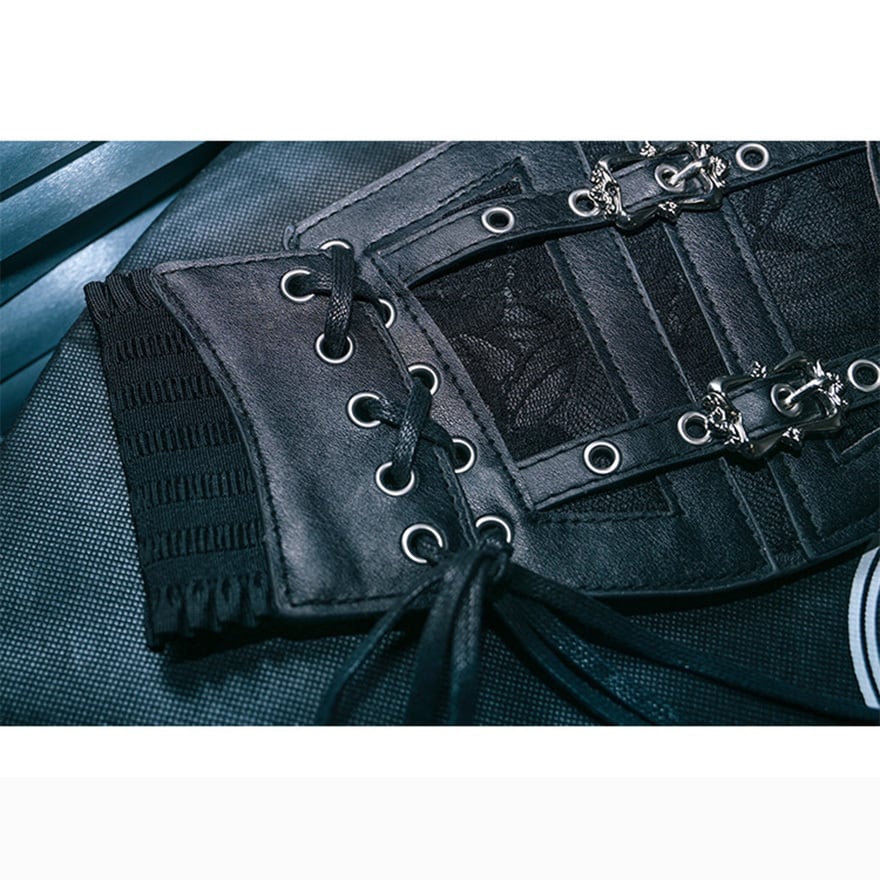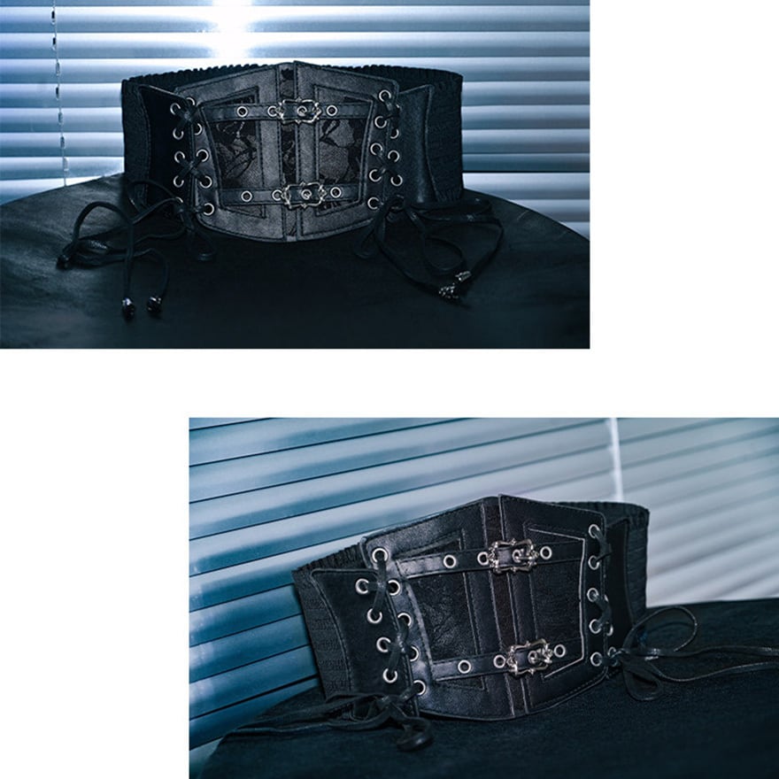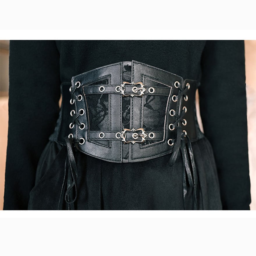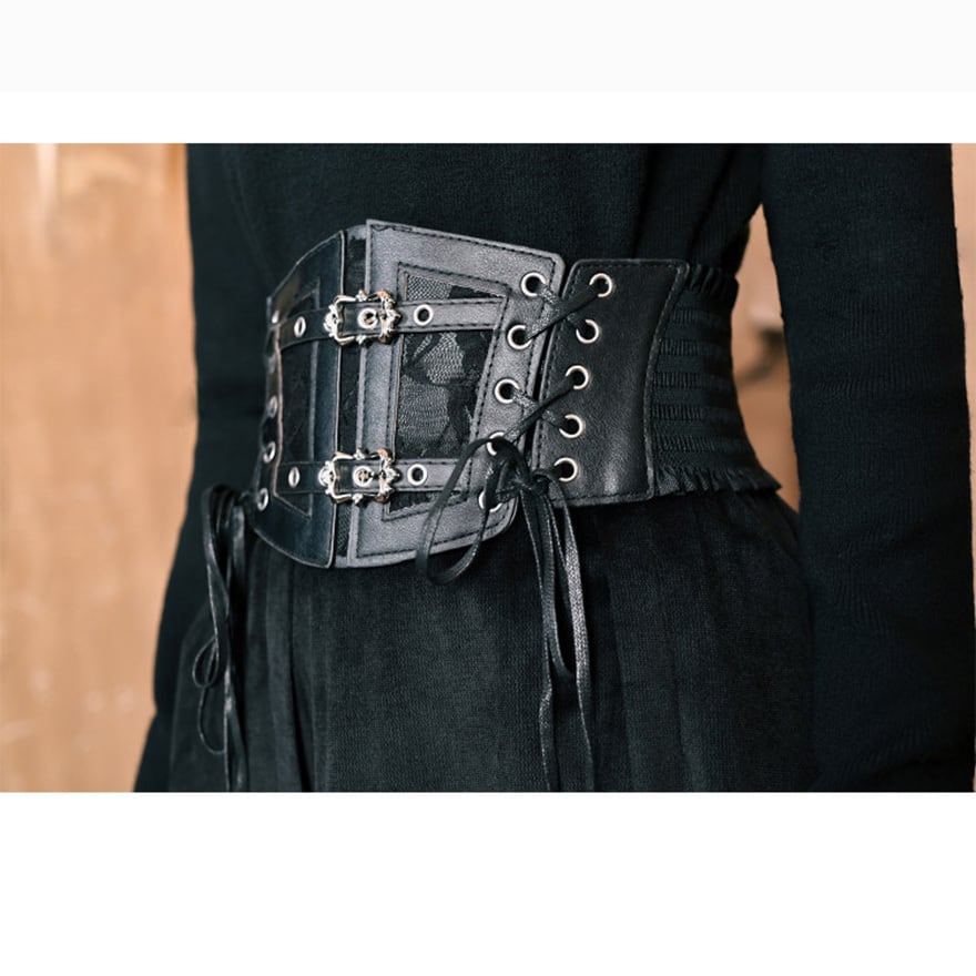ゴシック風 ダブルレースアップコルセットベルト レース切替 アンティーク調バックル