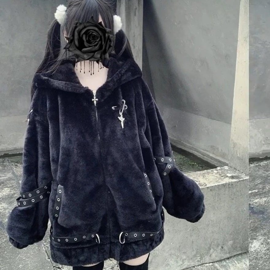 一般的な量産型アウターと比較し、ベルト装飾や金属パーツなどのパンク・ゴシック要素が強く、よりニッチなサブカル界隈(地雷系・天使界外・闇可愛い)に特化した立ち位置。