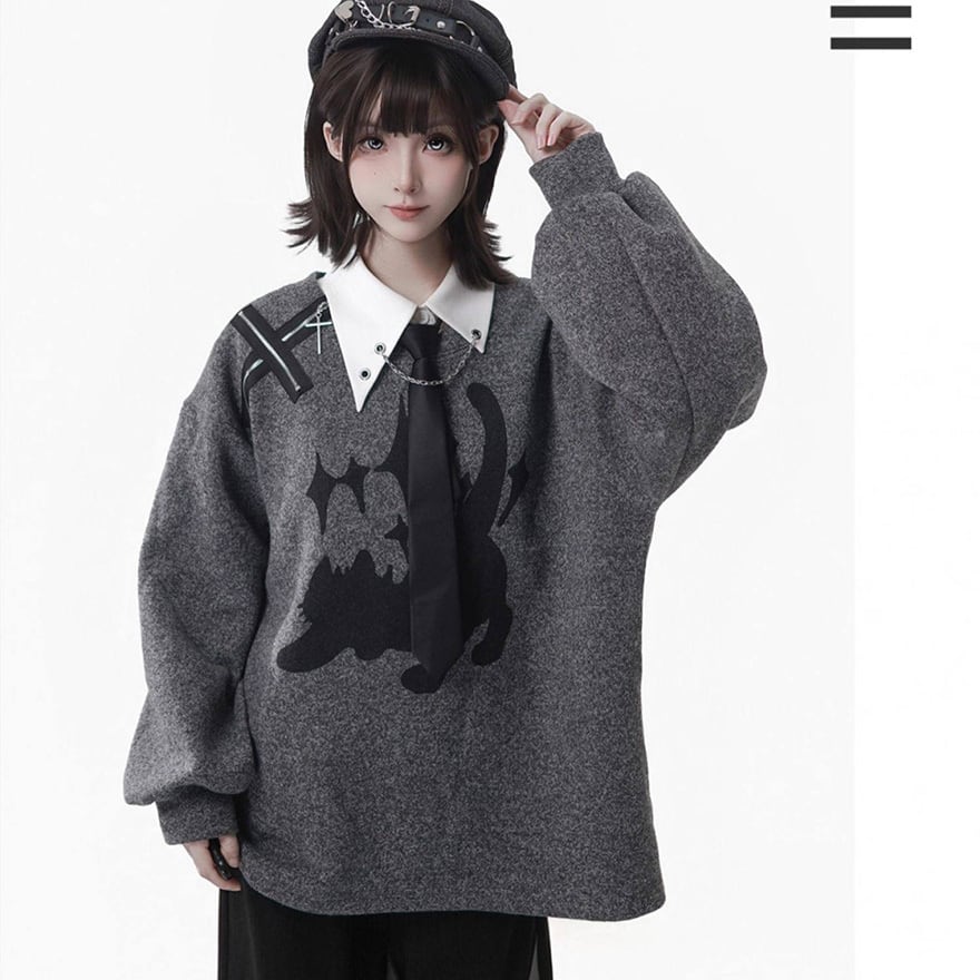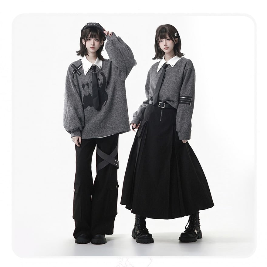 付属のベルトにより腰回りのシルエットを調整でき、制服風のコーディネートや日常のサブカル系スタイルを構築するのに適した一着です。