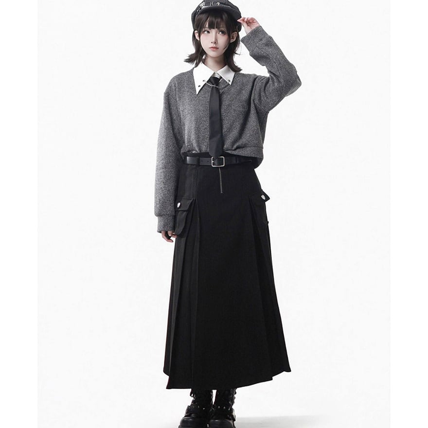 日常のカジュアルな外出、制服風のレイヤードスタイルでの写真撮影、サブカルチャー関連のイベント、通学など。