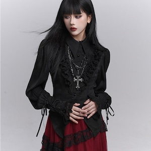 クラシカルでダークな世界観を好む方、シルエットの美しさと装飾性を両立させたトップスを探しているゴシックファッション愛好家の方。