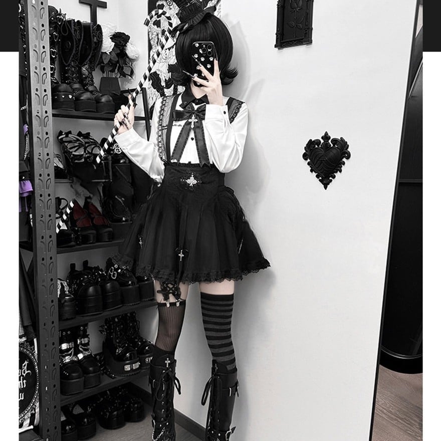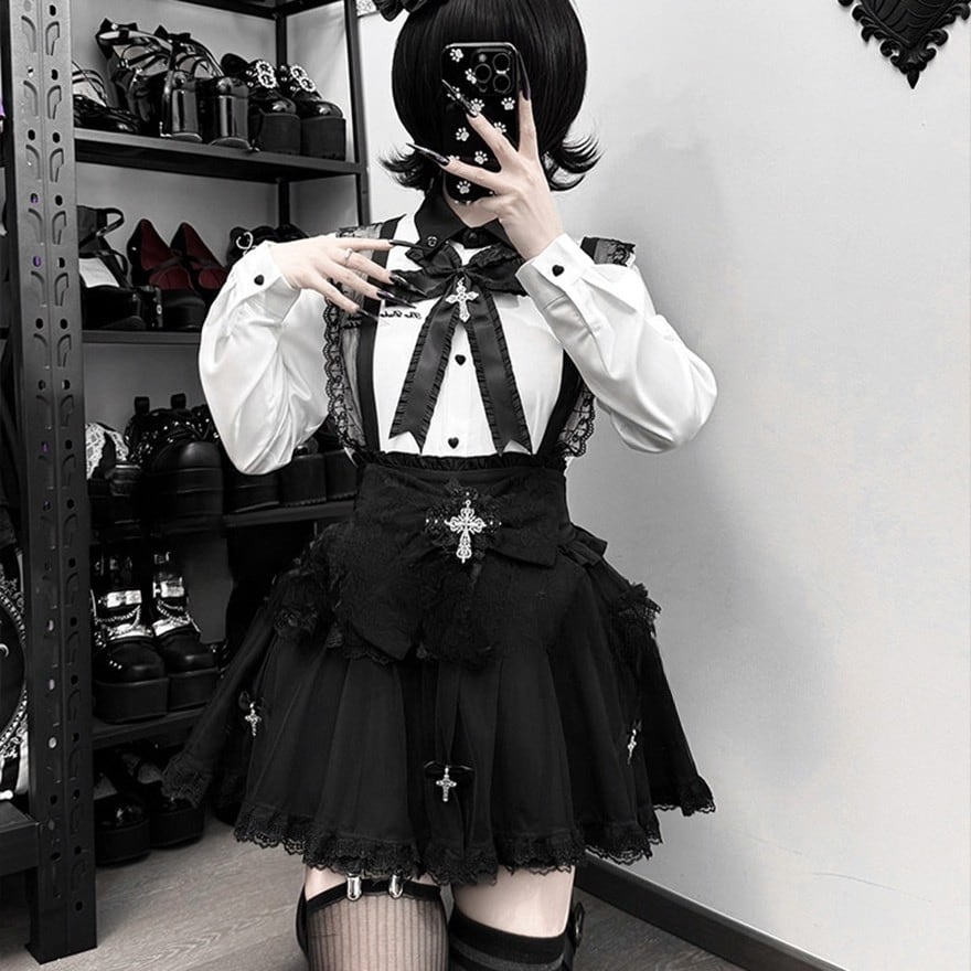 A. はい。モノトーンの配色のため、手持ちの黒いボトムスと合わせるだけで手軽に本格的なゴシック・地雷系スタイルが完成します。