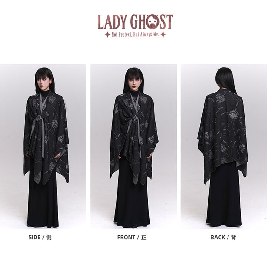 緻密な薔薇の図案がアクセサリーのような役割を果たすため、羽織るだけでゴシックな世界観が強調され、洗練されたコーディネートが完成します。