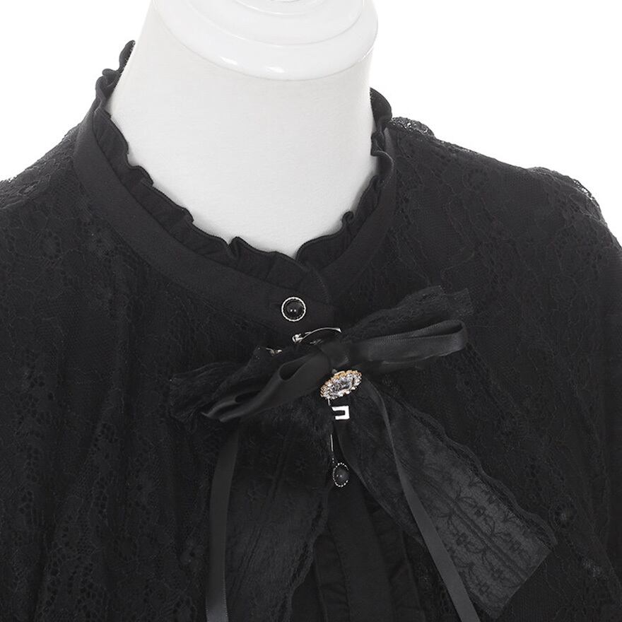 繊細なレースを重ねたケープが特徴的なゴスロリスタイルの長袖ブラウスです。