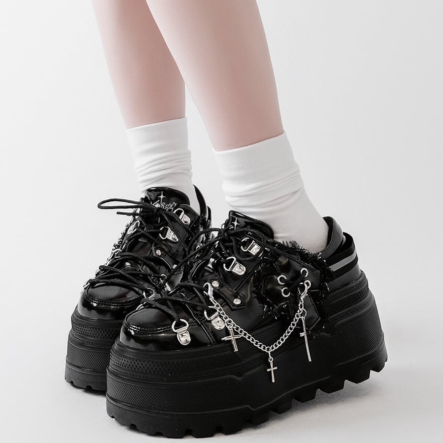 地雷系やパンク系のスタイルを好み、足元に圧倒的なボリュームを出したい方。装飾性の高い厚底靴を求める世界観重視の方。