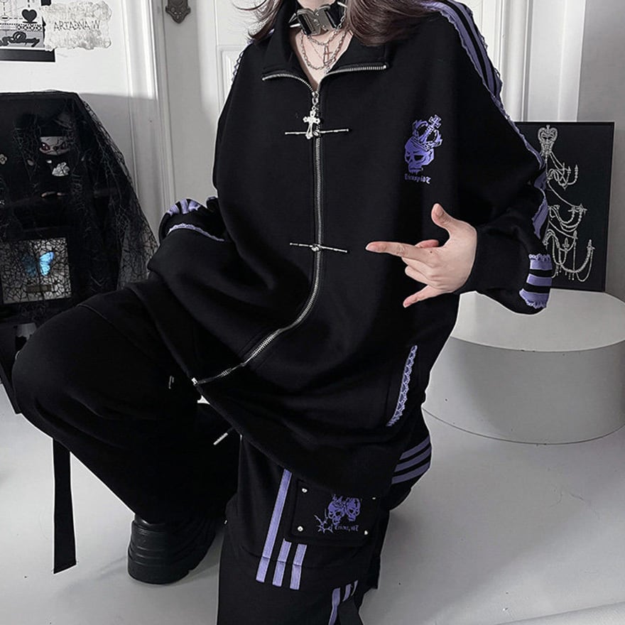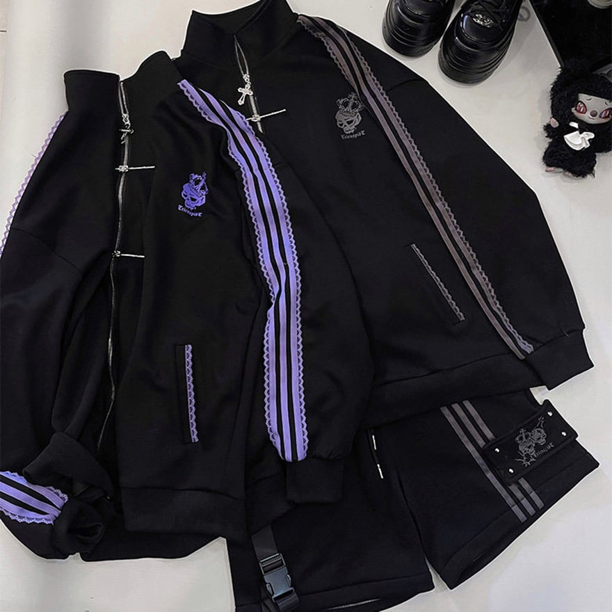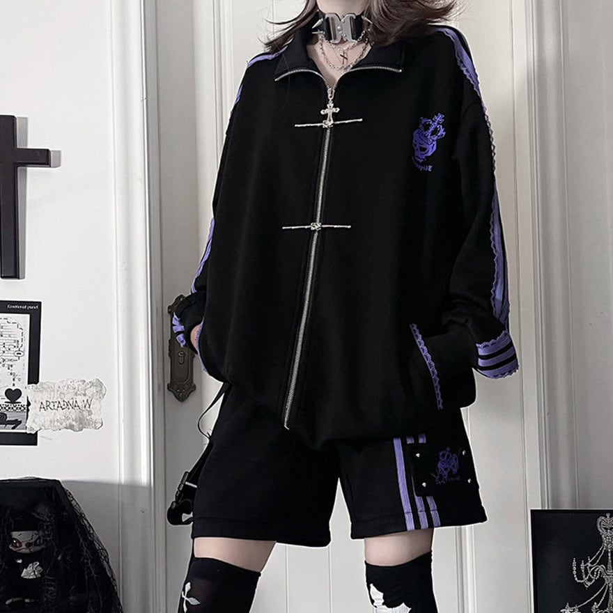 地雷系 ジャージ単品 刺繍×レースアップライン|黒 紫 ライブ 参戦服 コンカフェ|SEASONZ