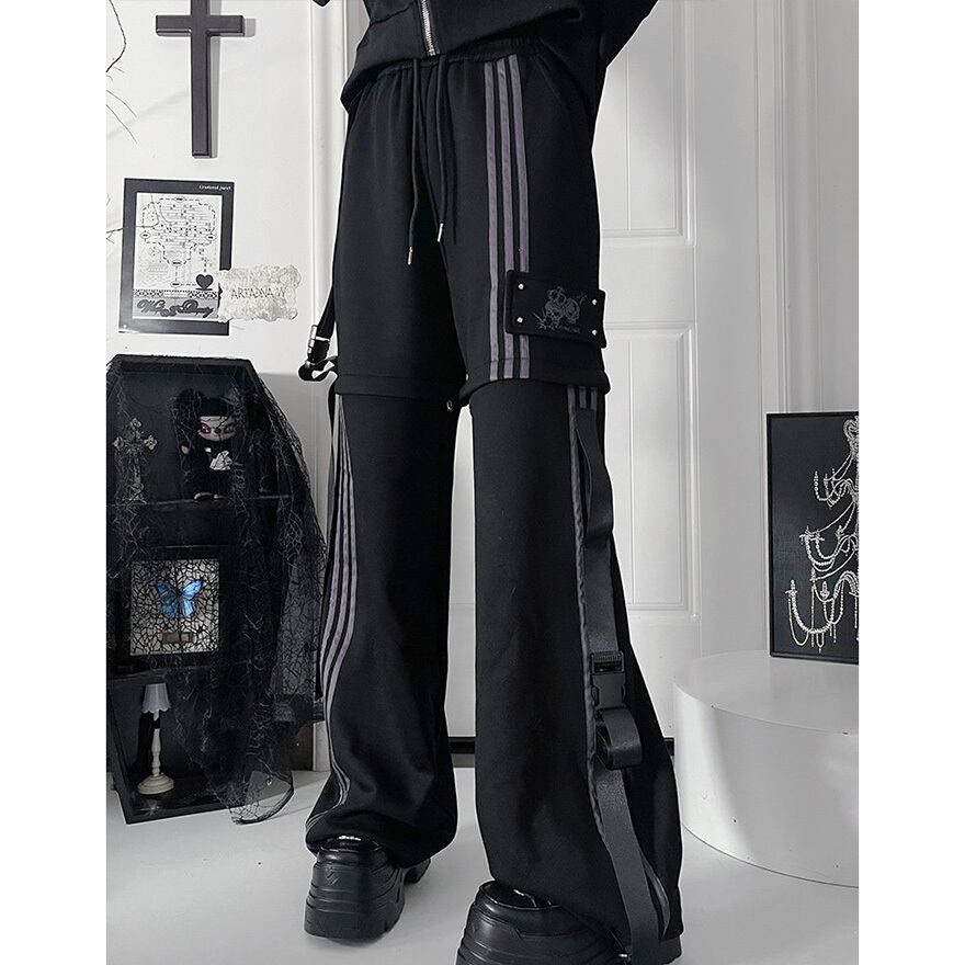 刺繍入りジャージトップス単品です。袖のレースアップ風ラインと胸元の独創的な刺繍が、ダークでストリートな世界観を演出します。