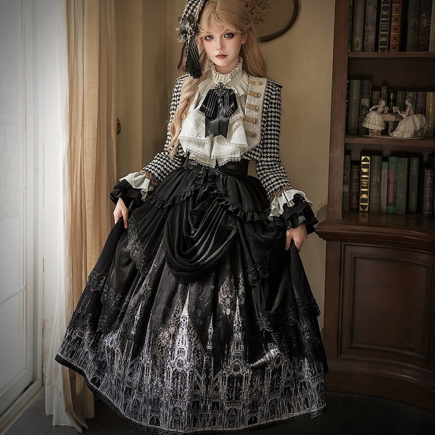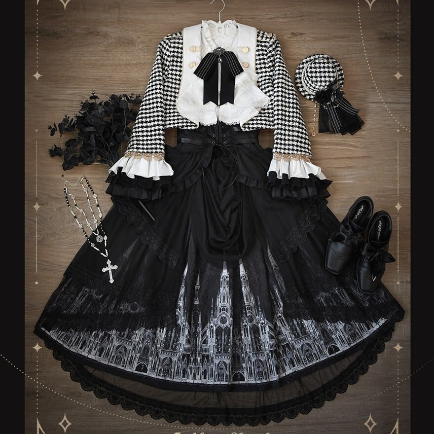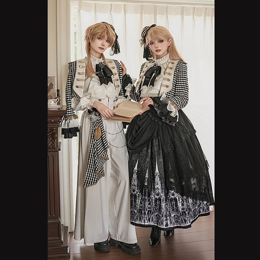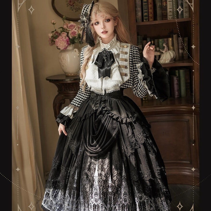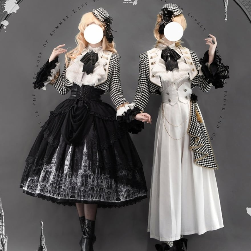 ゴシックプリンセス 千鳥格子ジャケット×ゴシック柄SKの王子系ロリィタ5点セット|予約納期120日