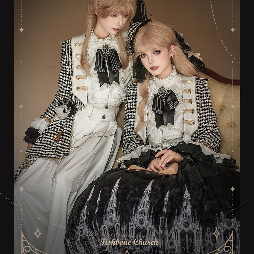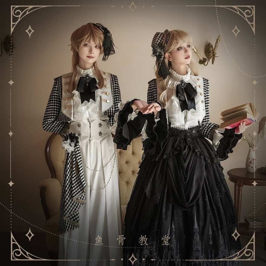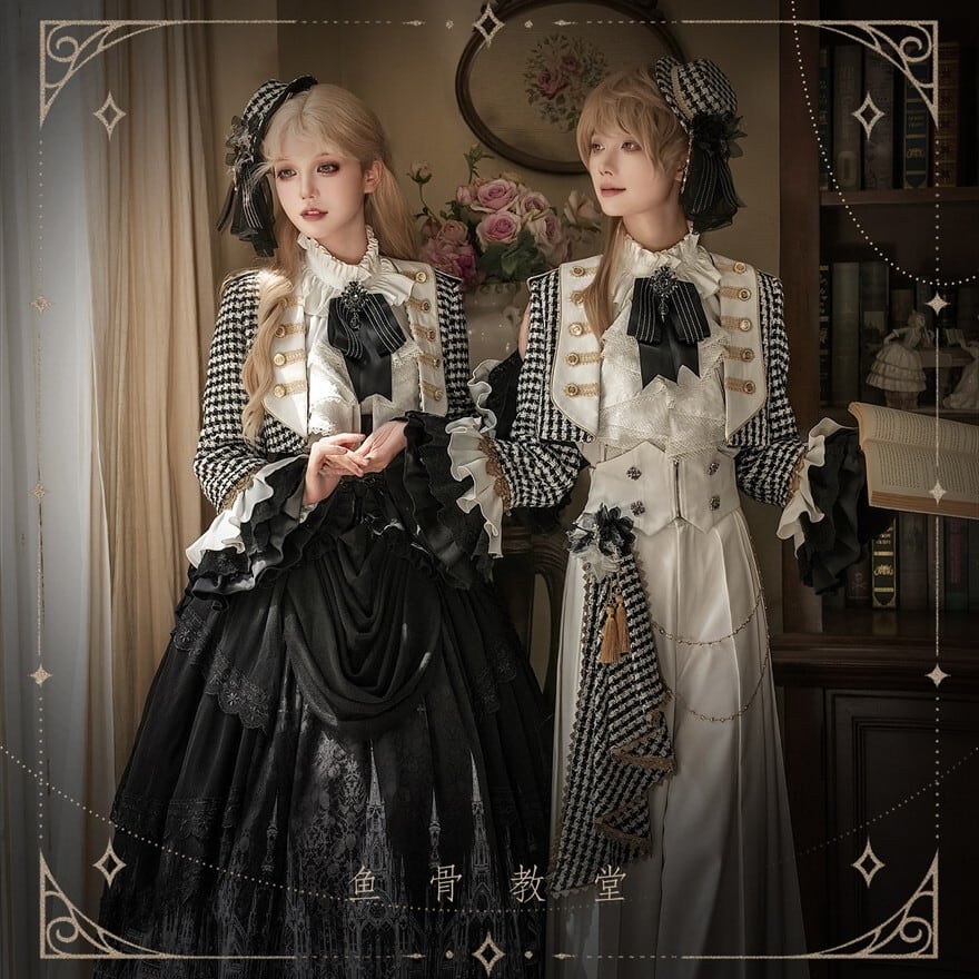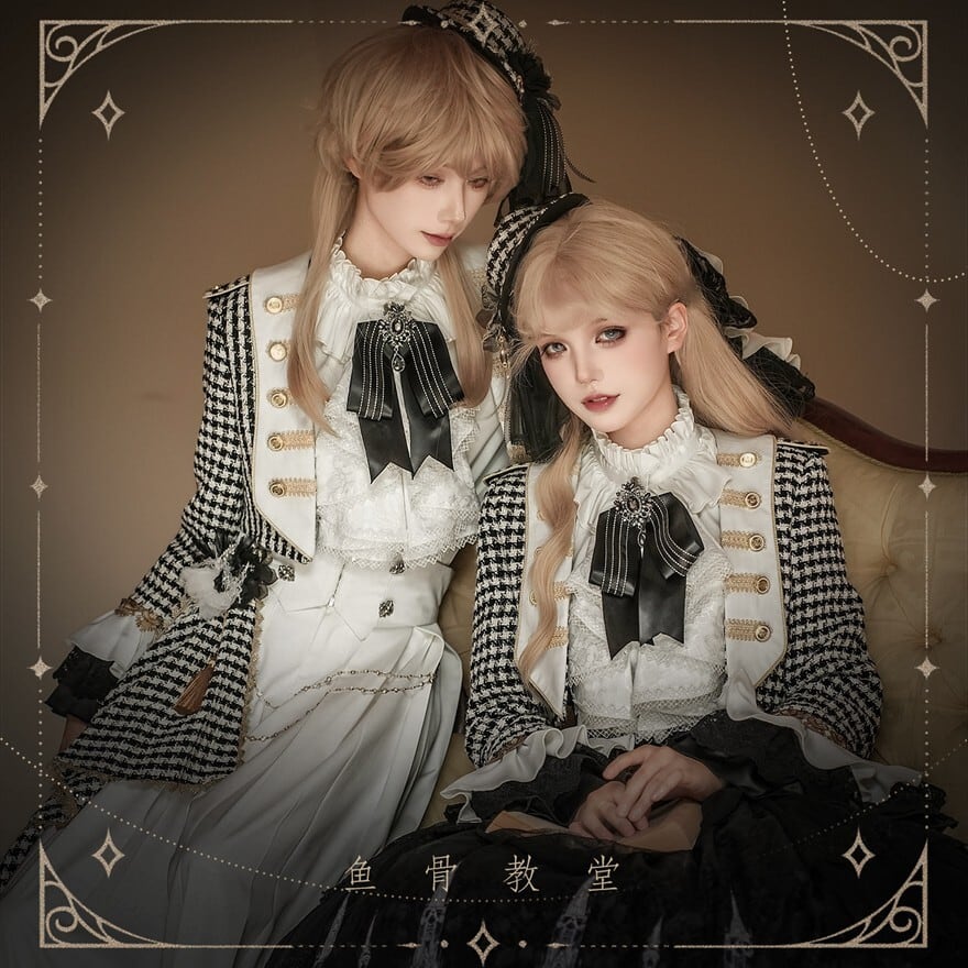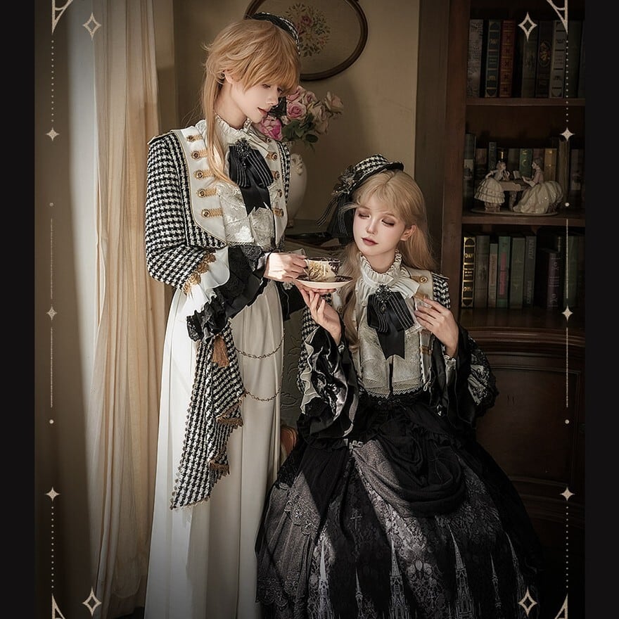 ゴシックプリンセス 千鳥格子ジャケット×ゴシック柄SKの王子系ロリィタ5点セット|予約納期120日