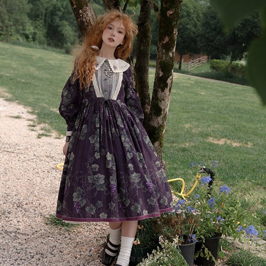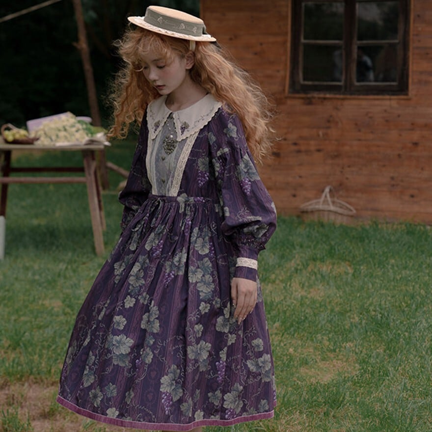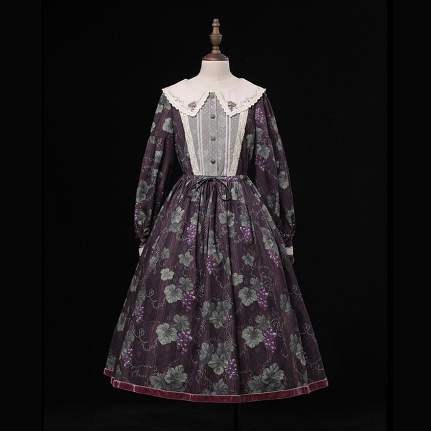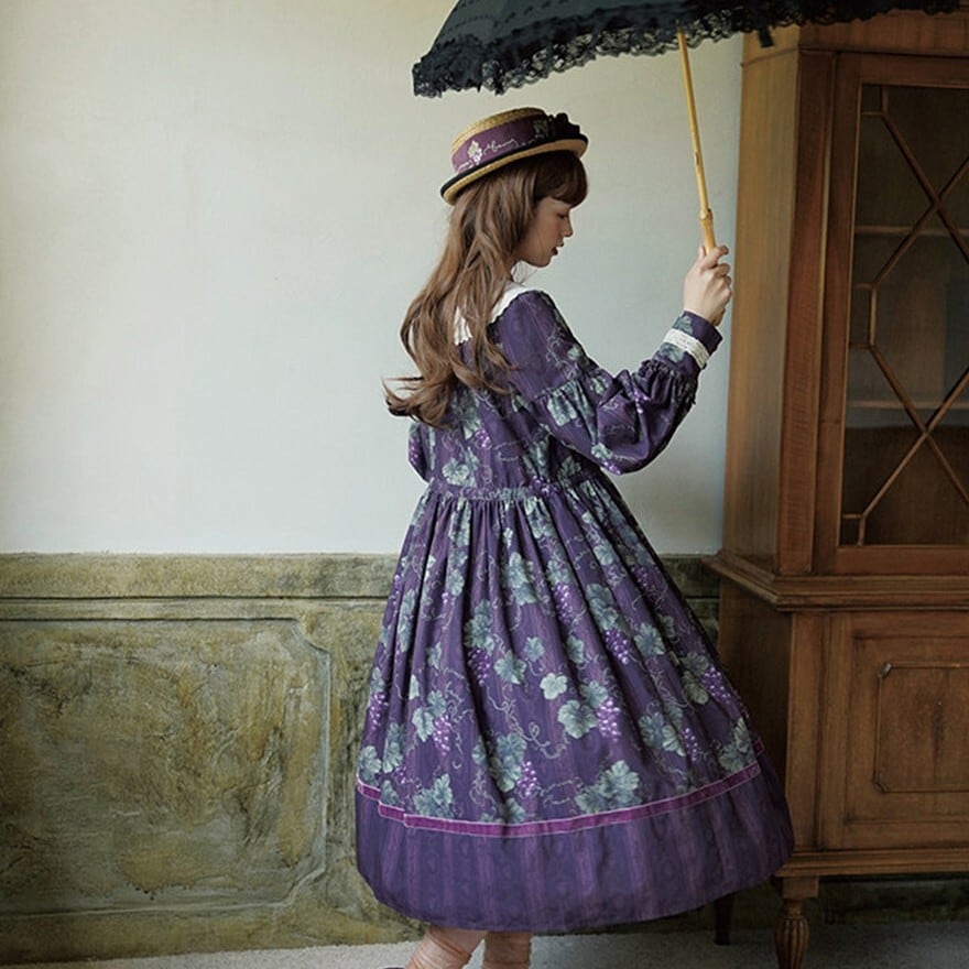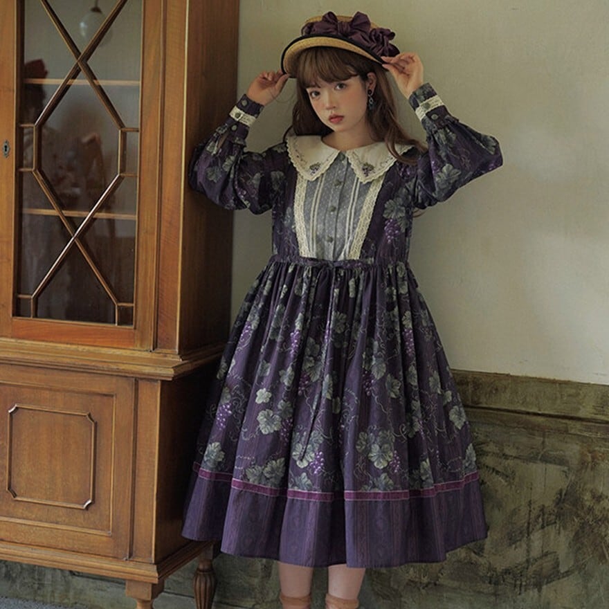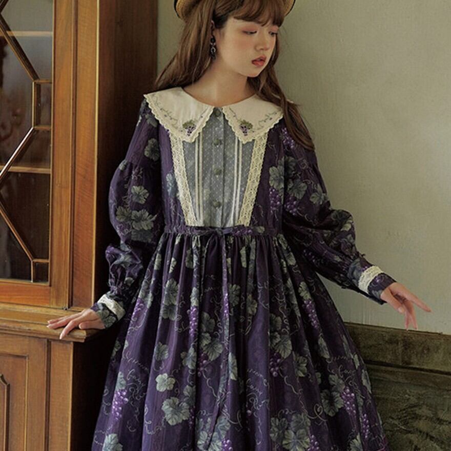 クラシカルロリィタ 花柄ロングワンピース 4タイプ ビッグセーラーカラー&ウエストリボン仕様|SEASONZ