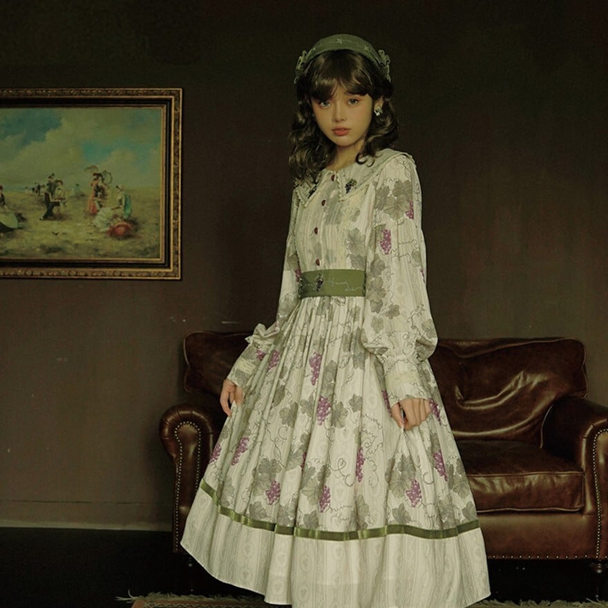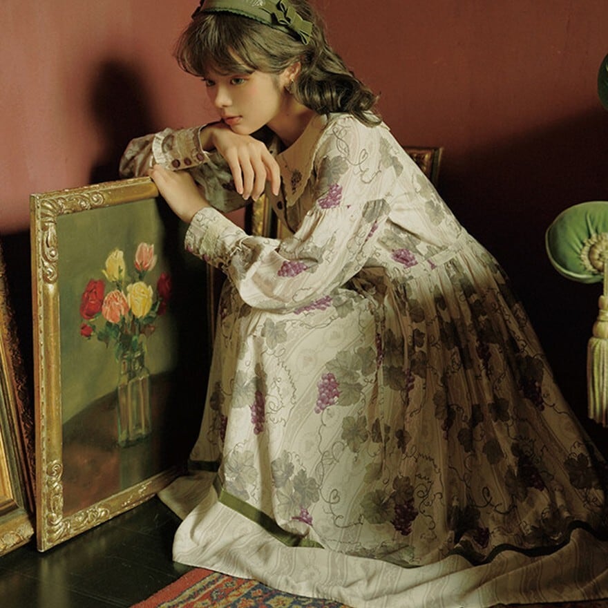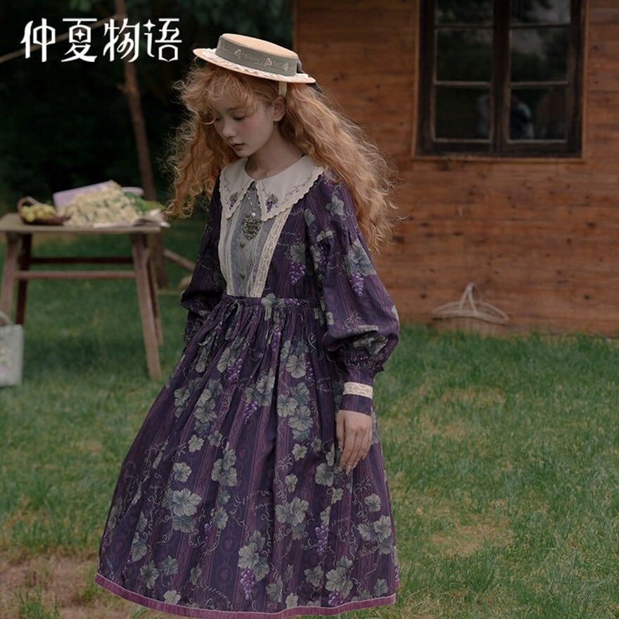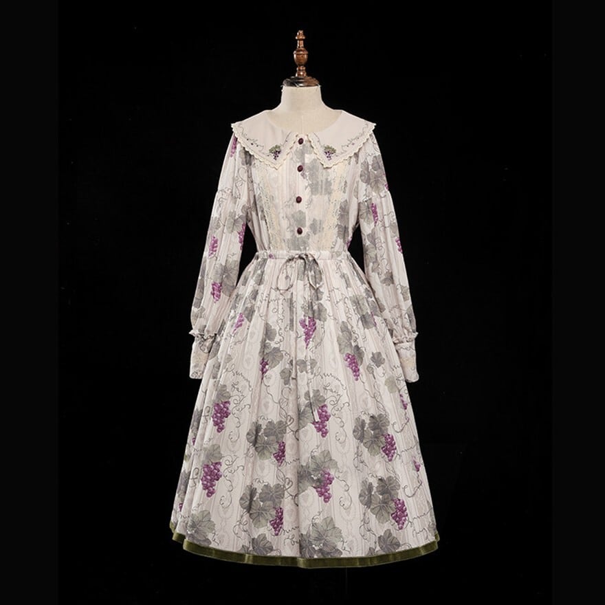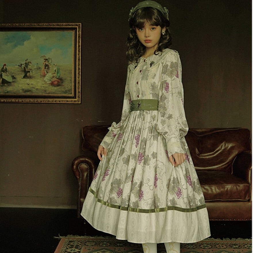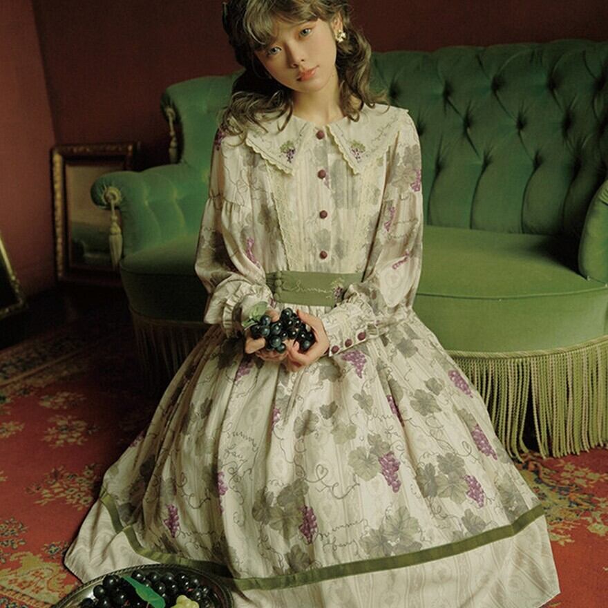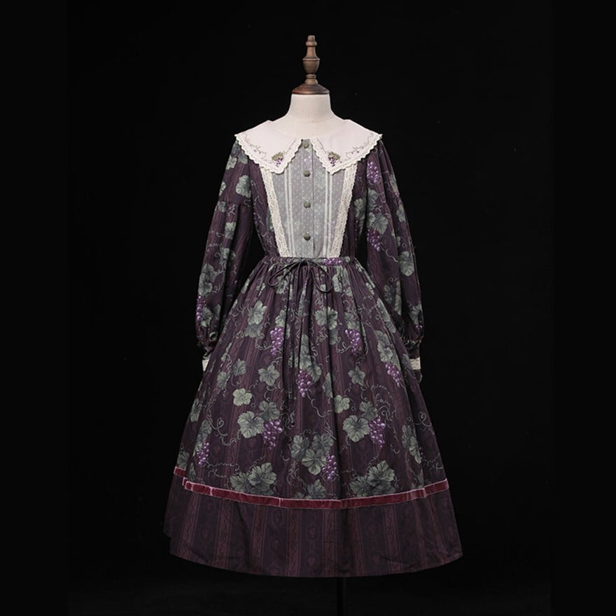 クラシカルロリィタ 花柄ロングワンピース 4タイプ ビッグセーラーカラー&ウエストリボン仕様|SEASONZ