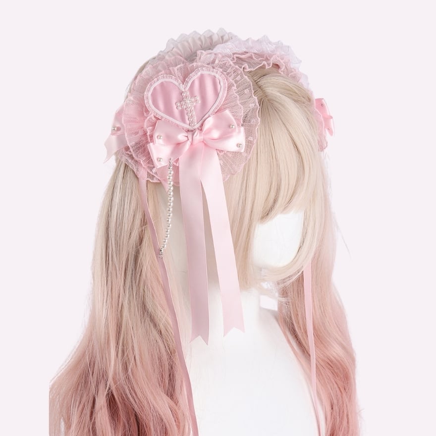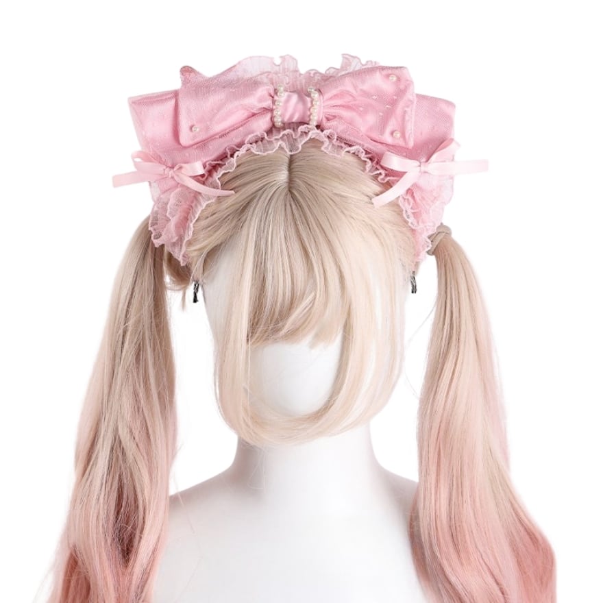 コンカフェの量産型・甘め系制服や私服に重ねる、存在感のあるメインヘアアクセとして活躍します。