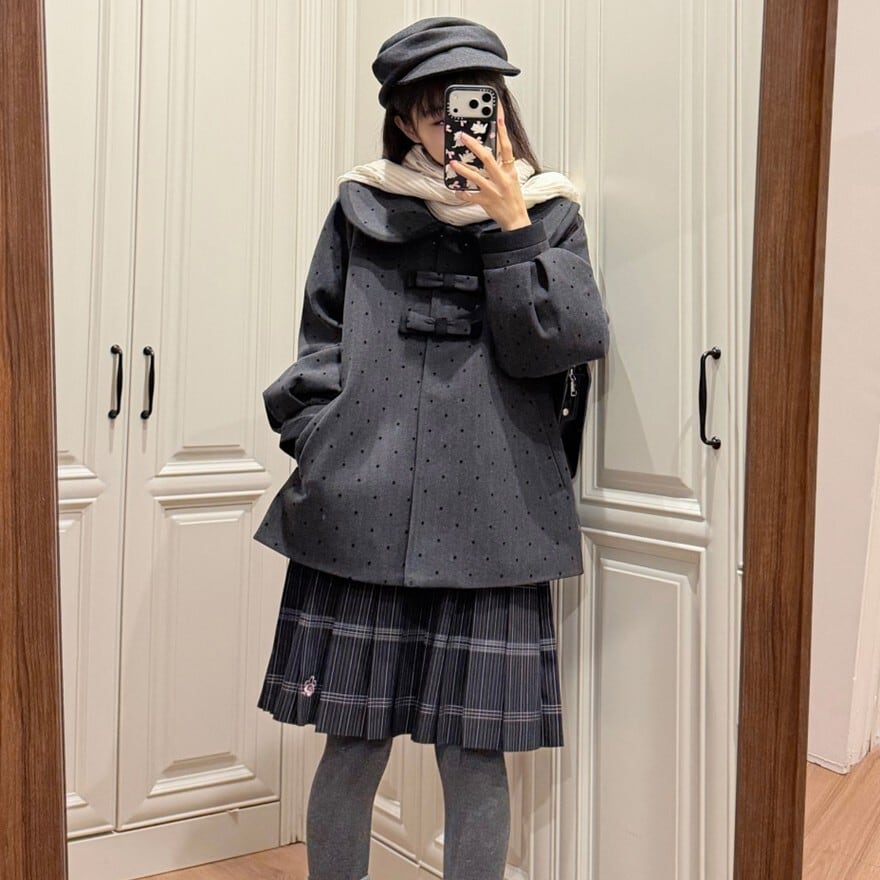 大きめ丸襟が可愛い クラロリJKセットアップ ドットジャケット&チェックプリーツスカート|SEASONZ
