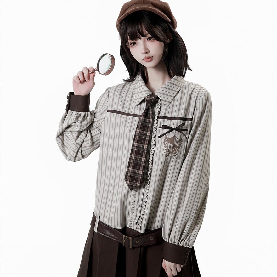 甘ロリのリボンタイよりもマニッシュで直線的な印象。ゴスロリのブラック系とは異なり、温かみのあるクラシカル配色。王子系やクラロリ寄りの中性的アクセサリー。