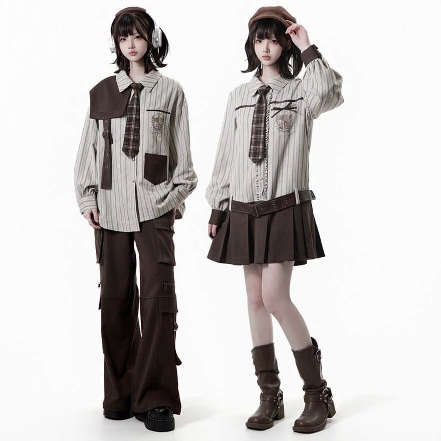 ・コーデに合うか不安 → 落ち着いたブラウンチェックで幅広いシャツと調和します。