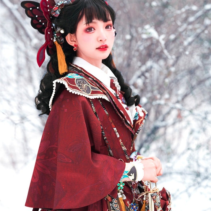 個々のアイテムを組み合わせる手間や「合わない」という失敗がなく、箱を開けて身に纏うだけで完成された中華ロリータの世界観に立てます。ケープは取り外して異なる印象を楽しむこともでき、撮影会・祭事・特別なイベント・舞台など、人生の節目に何度でも主役として輝ける設計です。