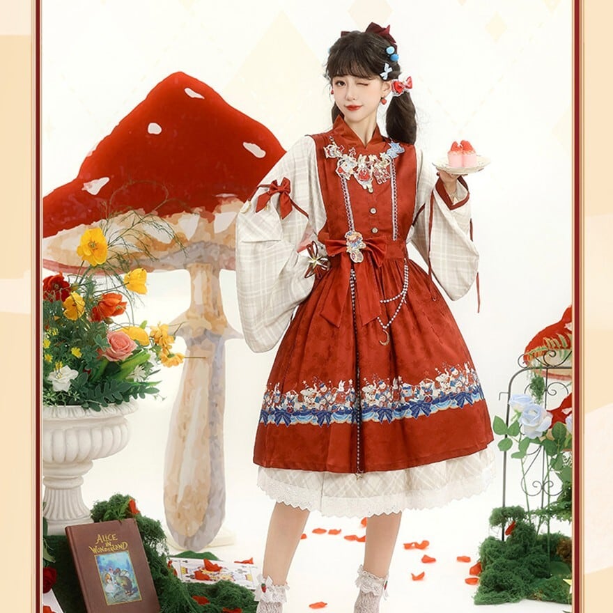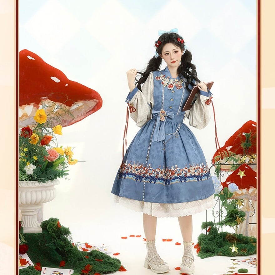 中華ロリータ 物語風プリント ジャンパースカート+ブラウス セットアップ 膝丈2点セット|SEASONZ